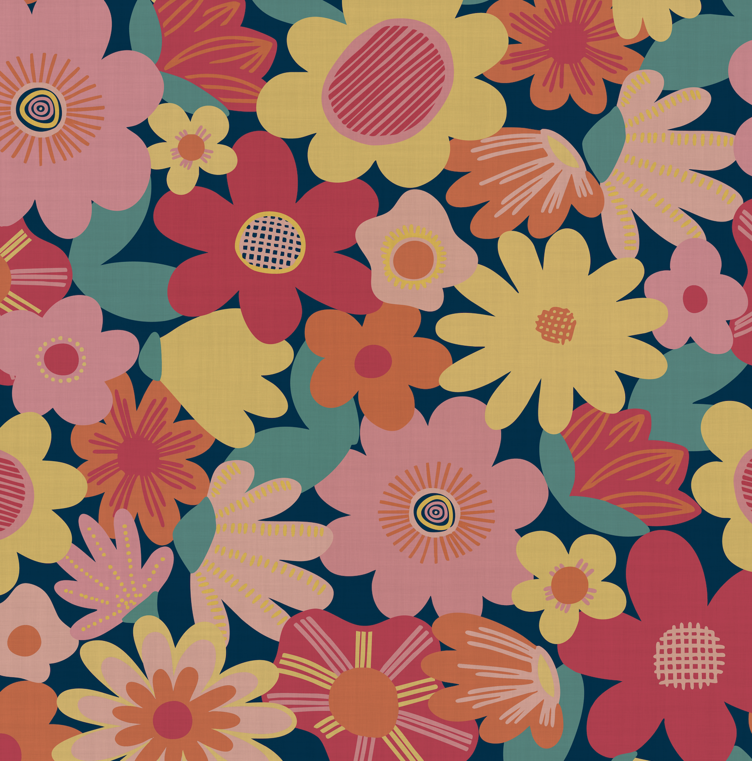 Quilter and pinwheel Ogee in retro colours with texture ~ Wallpaper