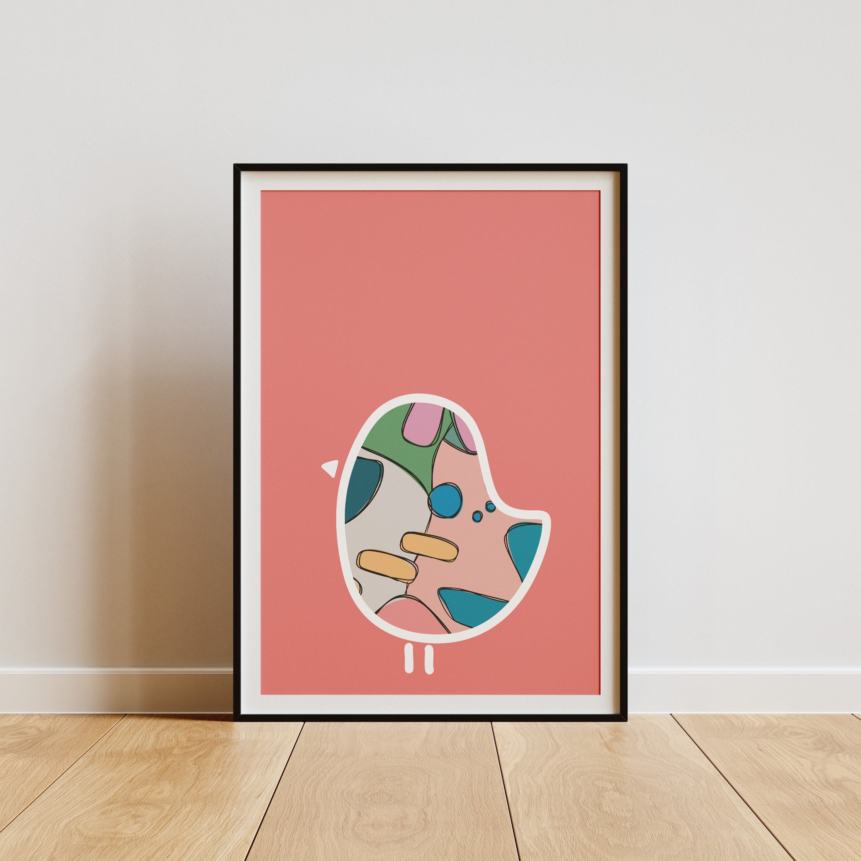 Bertie Bird - hand drawn doodle wall art - digital download