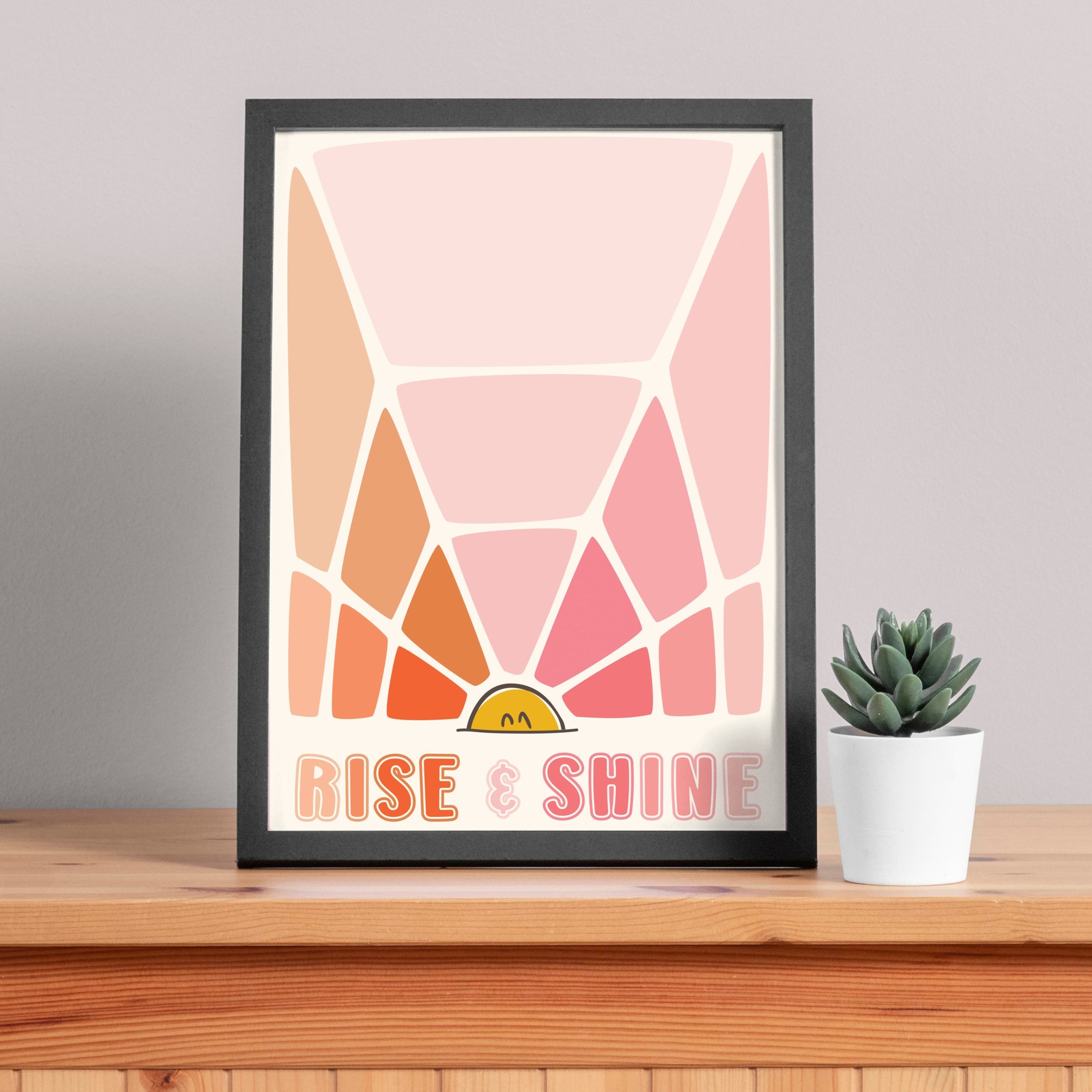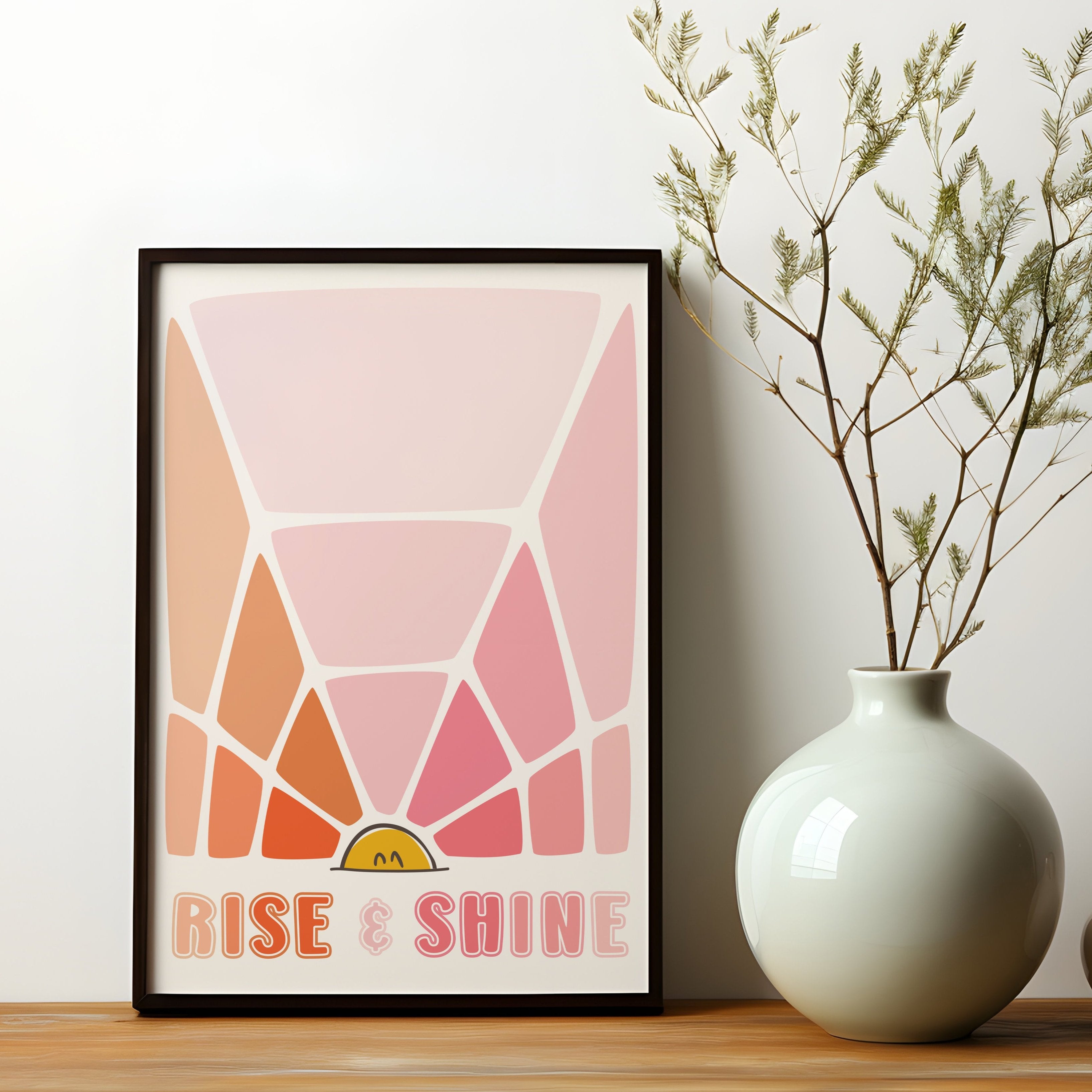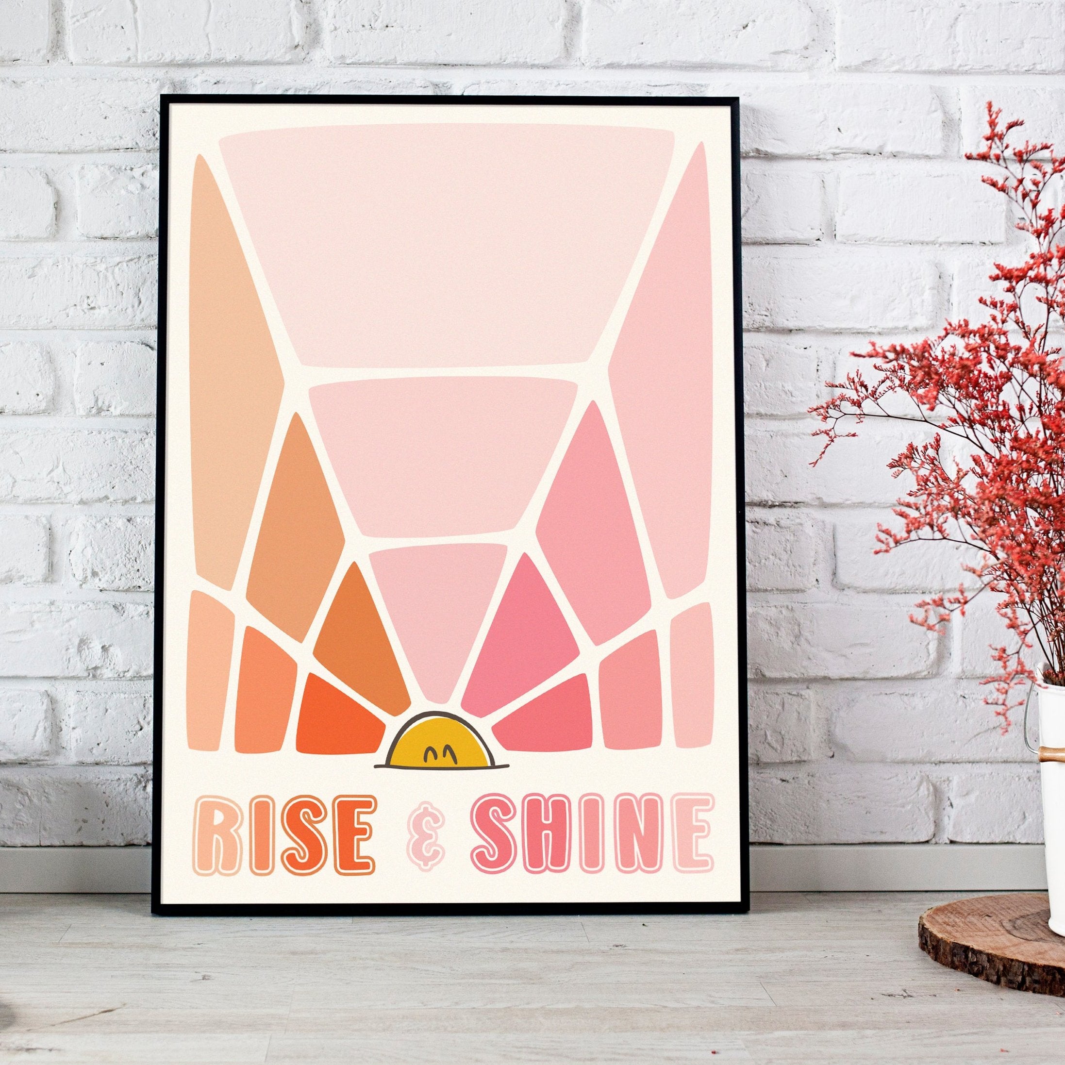 'Rise and Shine' A beautiful original artwork showing a glorious sunrise full of warm colour gradients. Instant download wall art. Minimalist artwork, sleek and elegant design perfect for a new pop of colour on your walls. Subtle artwork to brighten up a room.