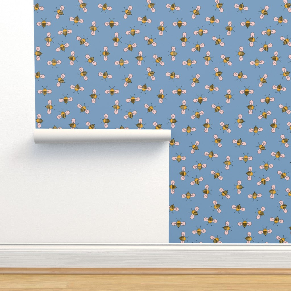 Buzzing bees on blue background - view from above ~ Wallpaper