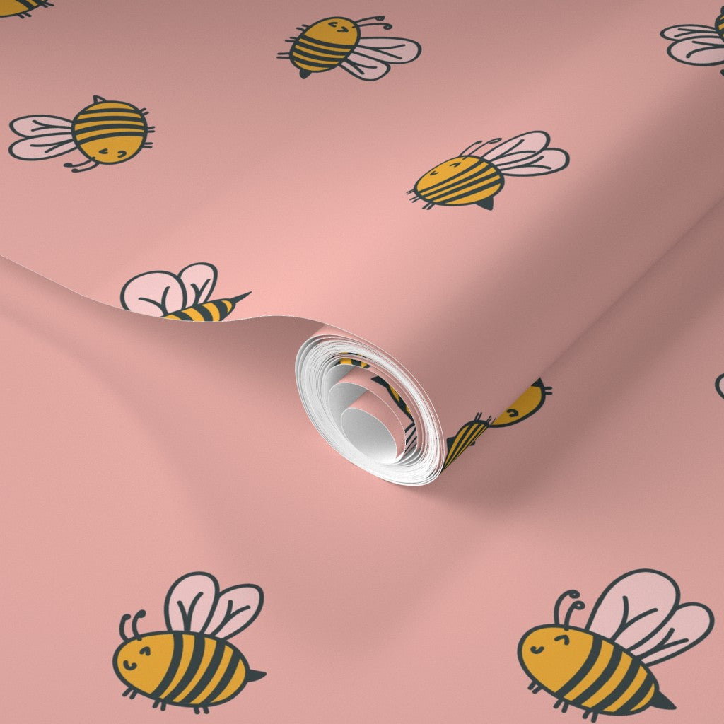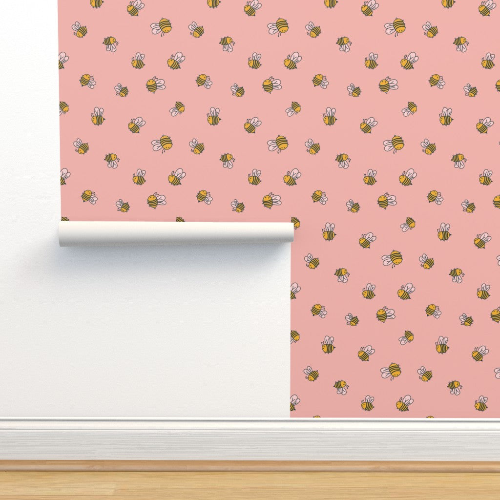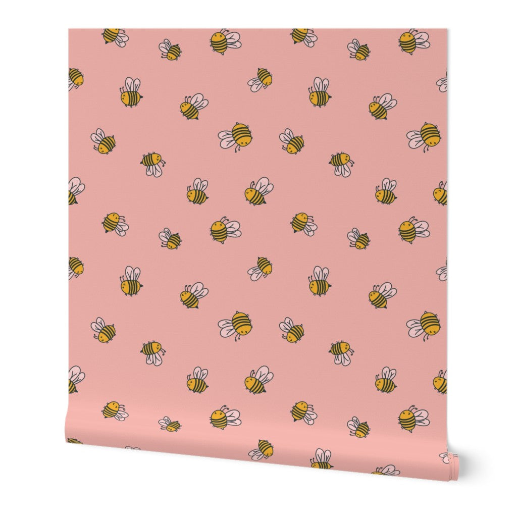 Buzzing bees on pale pink background - profile view ~ Wallpaper