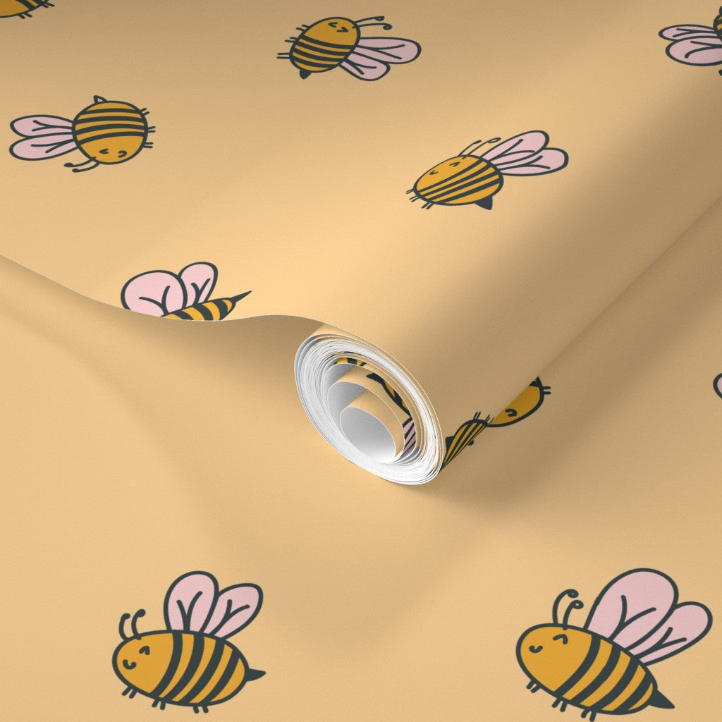 Cute hand drawn bees buzzing around on a yellow background. Perfect for nurseries and children's clothes.