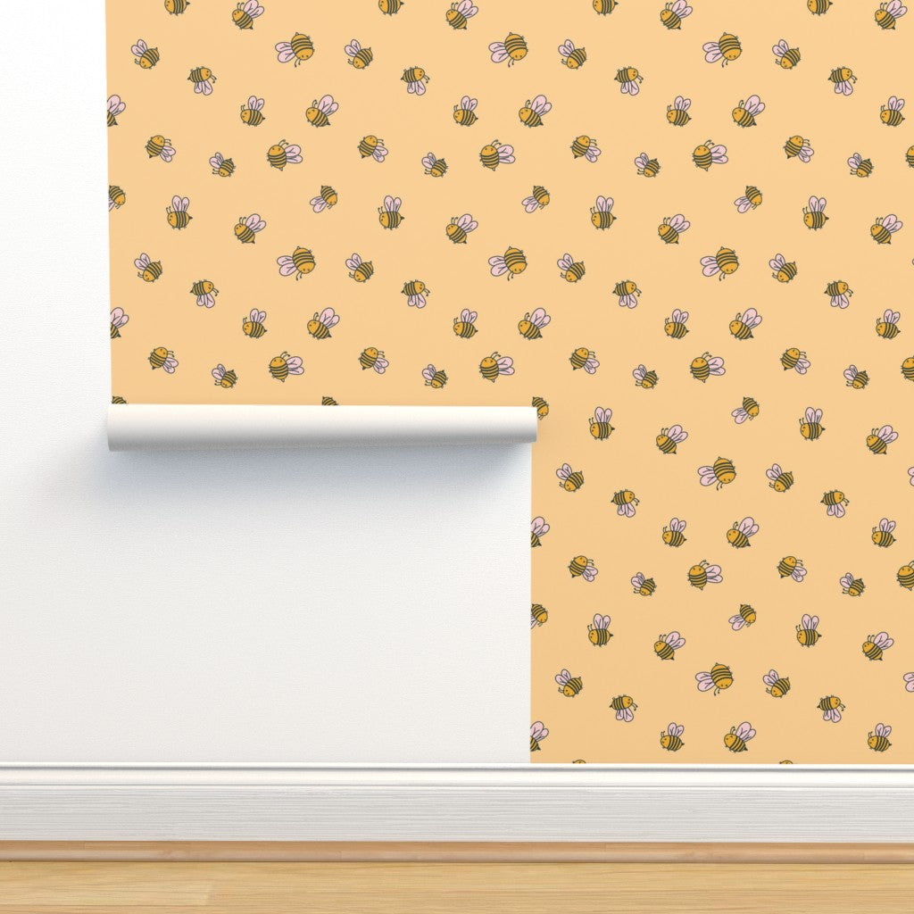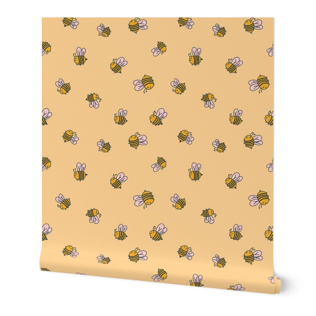 Buzzing bees on yellow background - profile view ~ Wallpaper