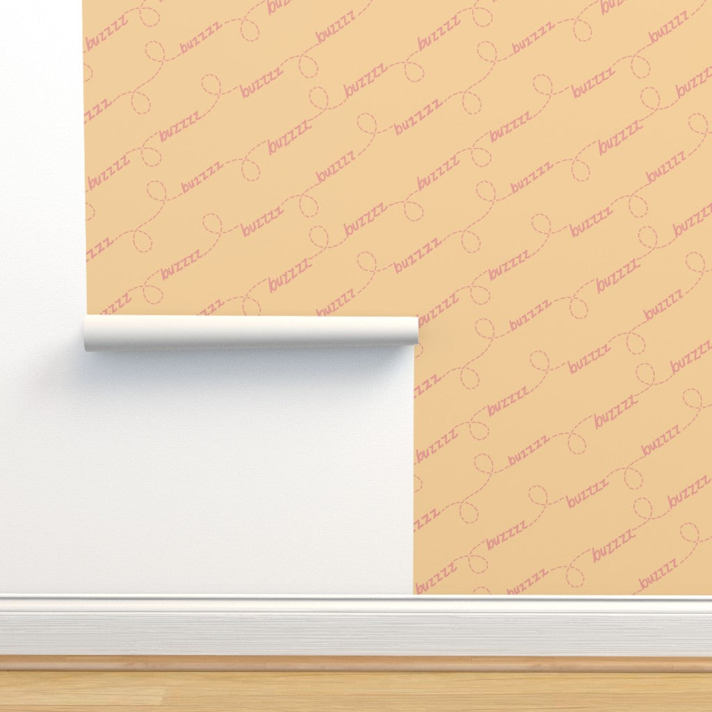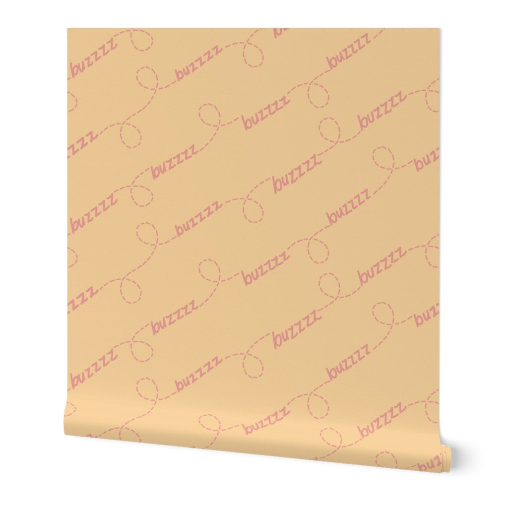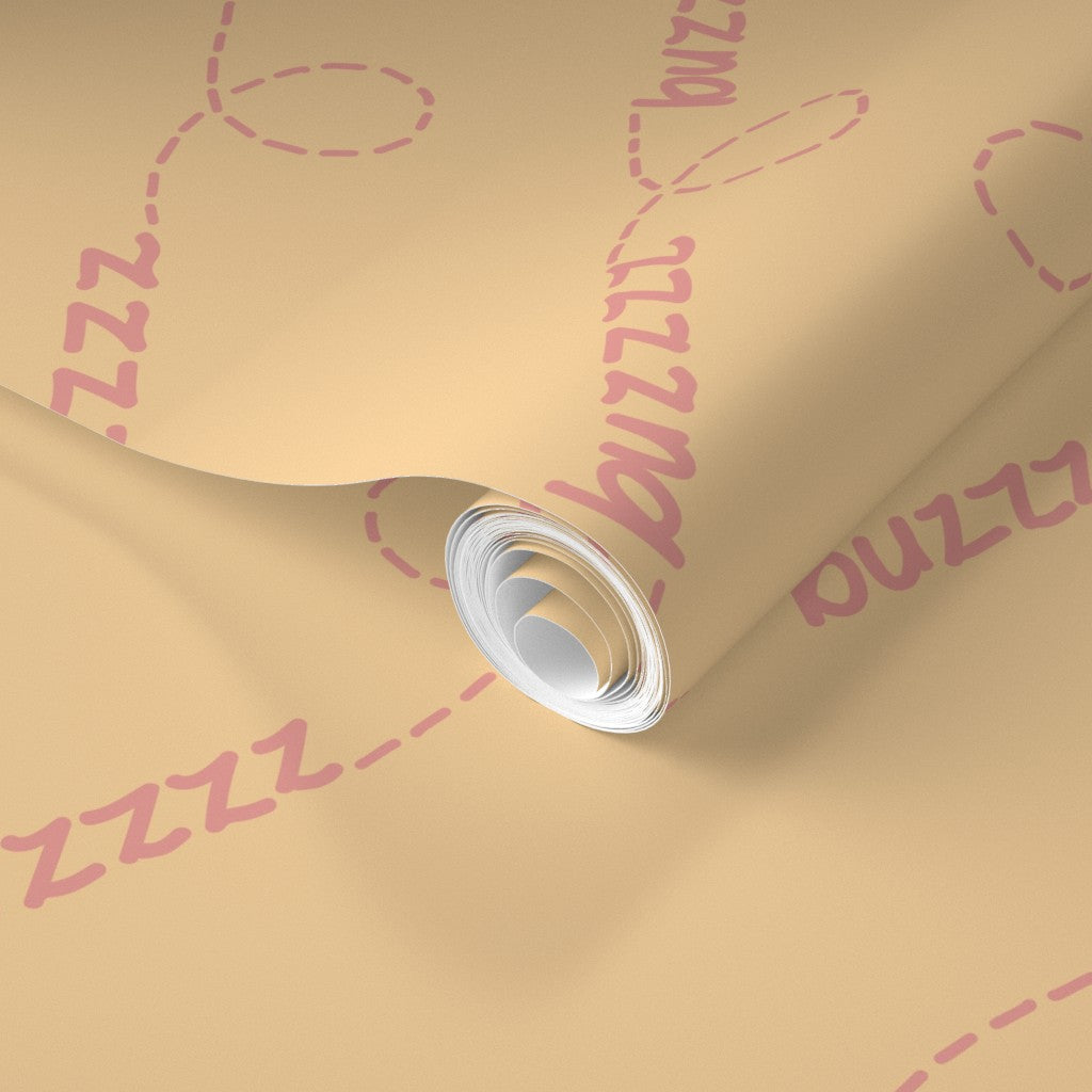 Hand written 'buzzzz' to match the Bees and Buttons collection. Pink writing on yellow background.