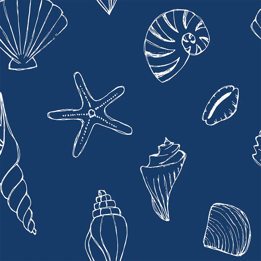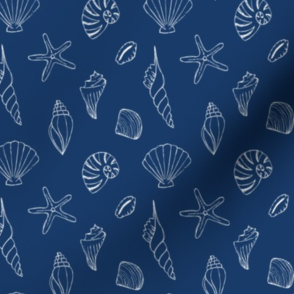 Gorgeous hand drawn sea shells in white on a blue background. This complimentary design is a part of my Coastal Collection.