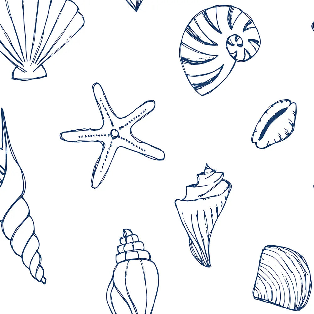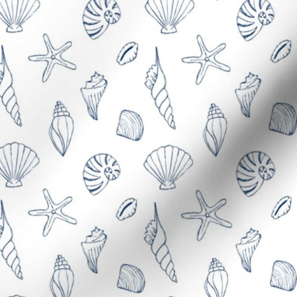 Gorgeous hand drawn, sketch-like sea shells in navy on a white background. This complimentary design is a part of my Coastal Collection.