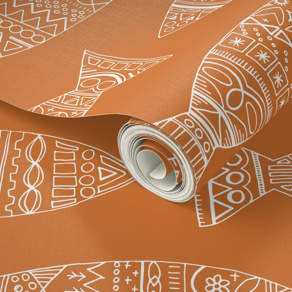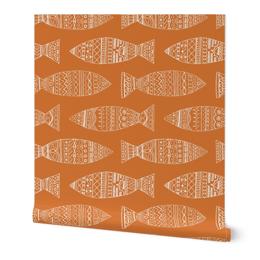 Coastal Collection - Portuguese sardines - inverted orange ~ Wallpaper