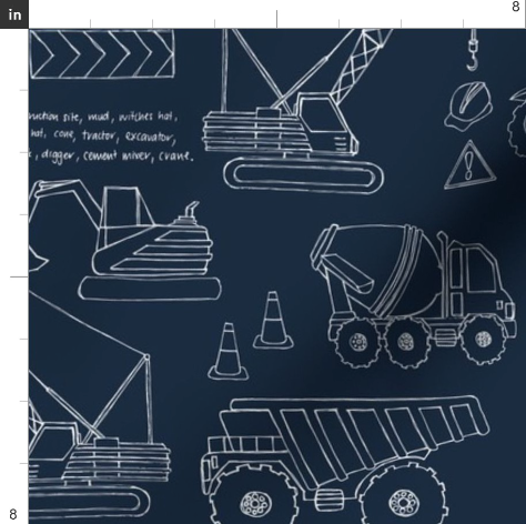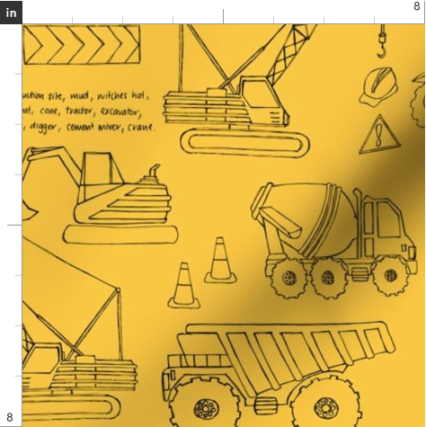 This gorgeous collection consists of hand drawn construction site vehicles and blender check patterns. The hero pattern was created by hand and has converted to vector drawings.