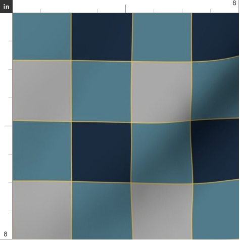 This large checker pattern was designed to compliment the Construction site hero pattern. It consists of blue grey, dark blue and grey boxes, with a yellow pinstripe running through the design.