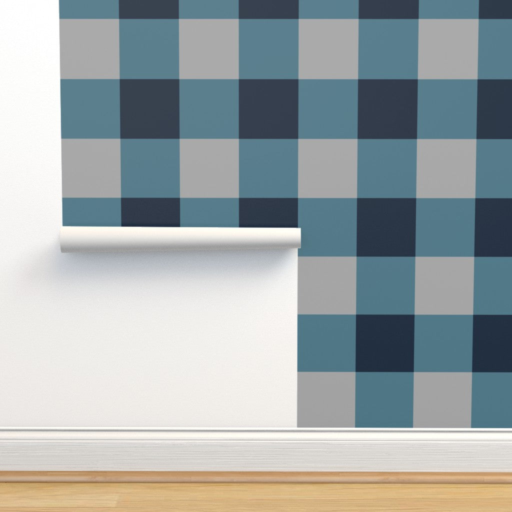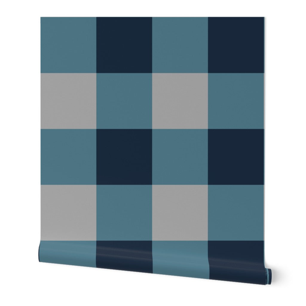 This large checker pattern was designed to compliment the Construction site hero pattern. It consists of blue grey, dark blue and grey boxes.