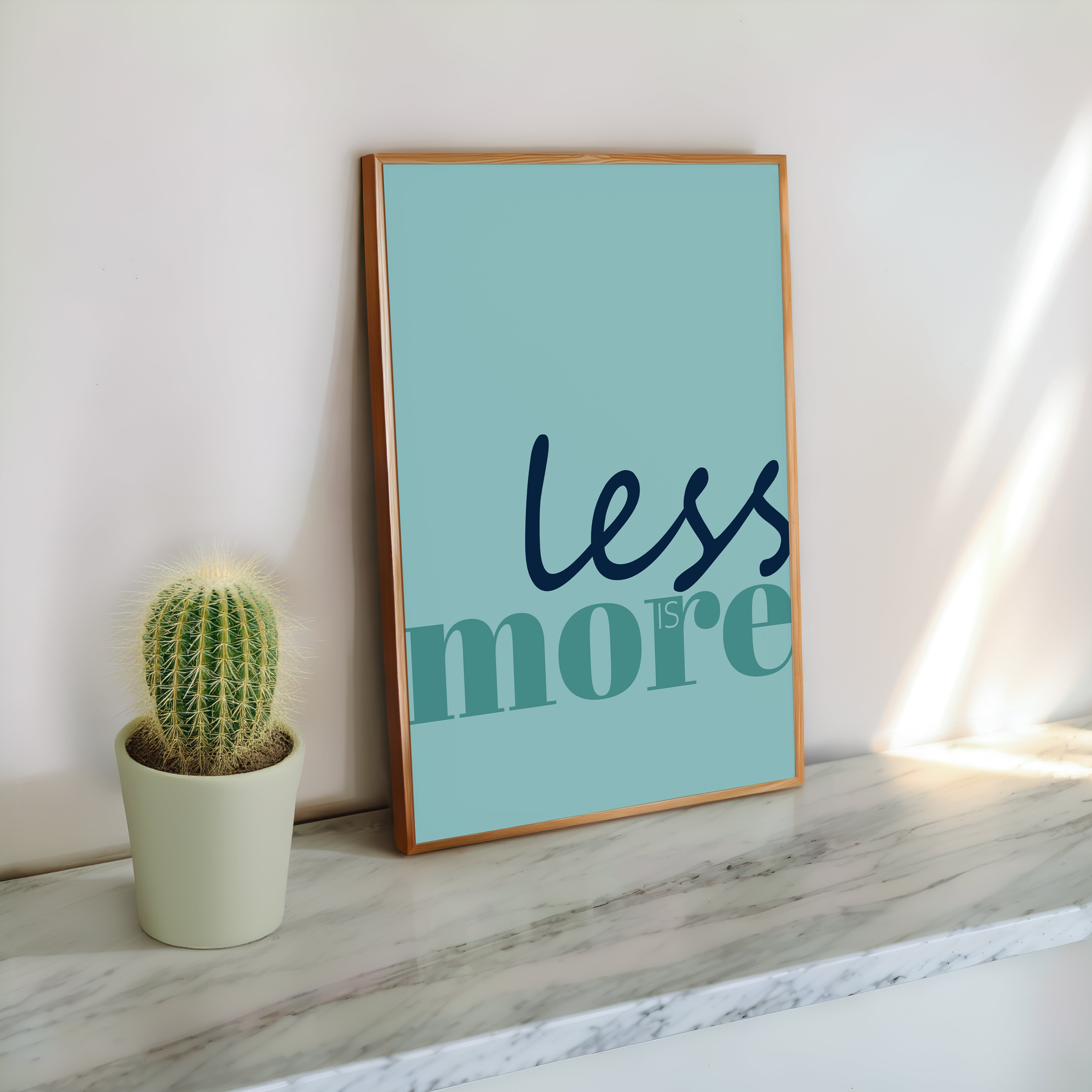 Less Is More – Minimalist Blue & Aqua Digital Download Poster