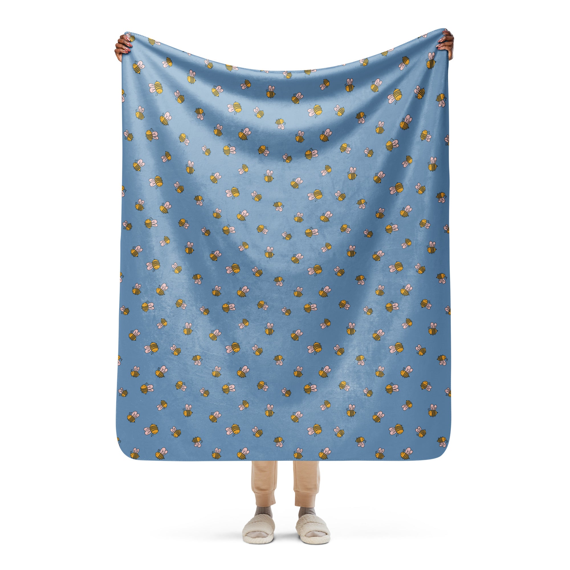 Bees on blue - profile ~ Sherpa blanket