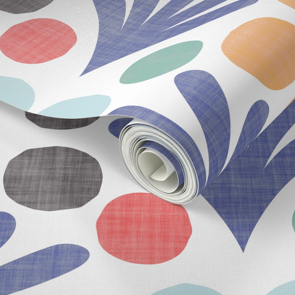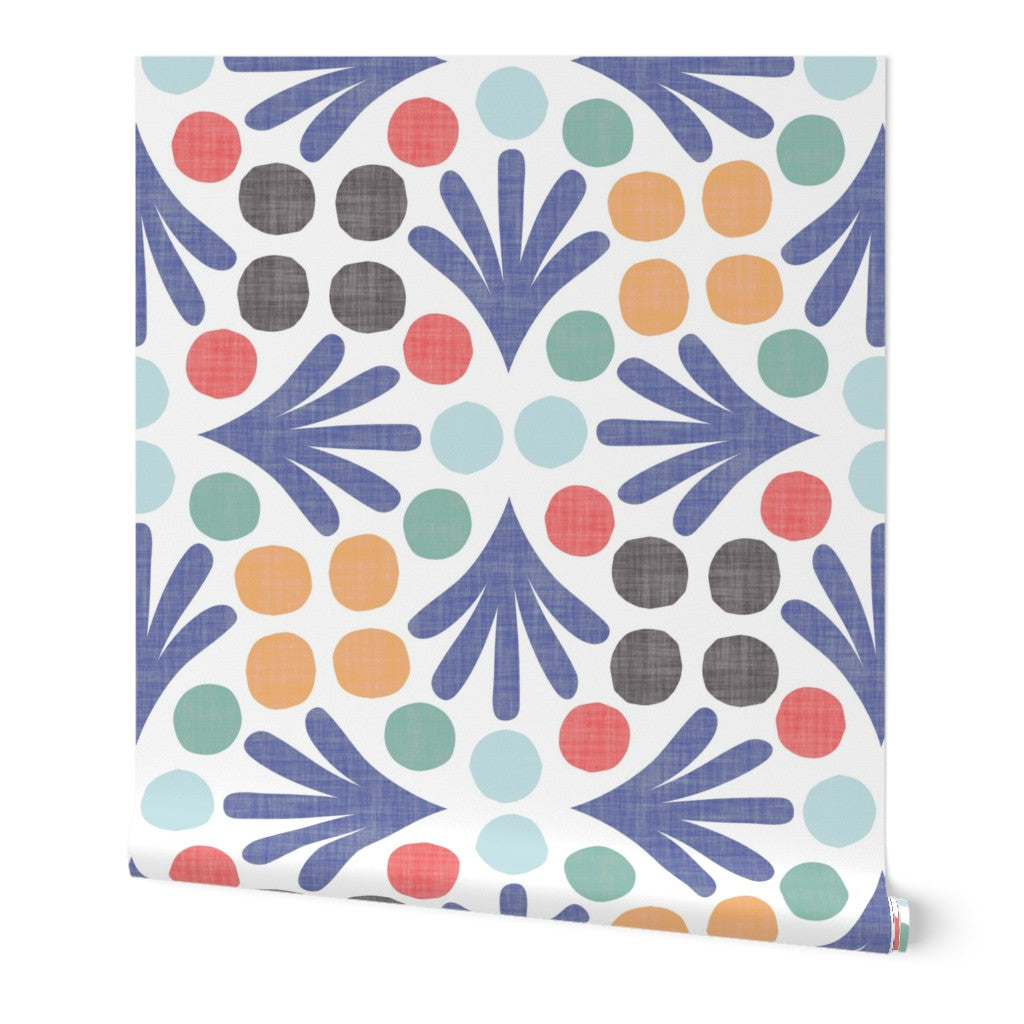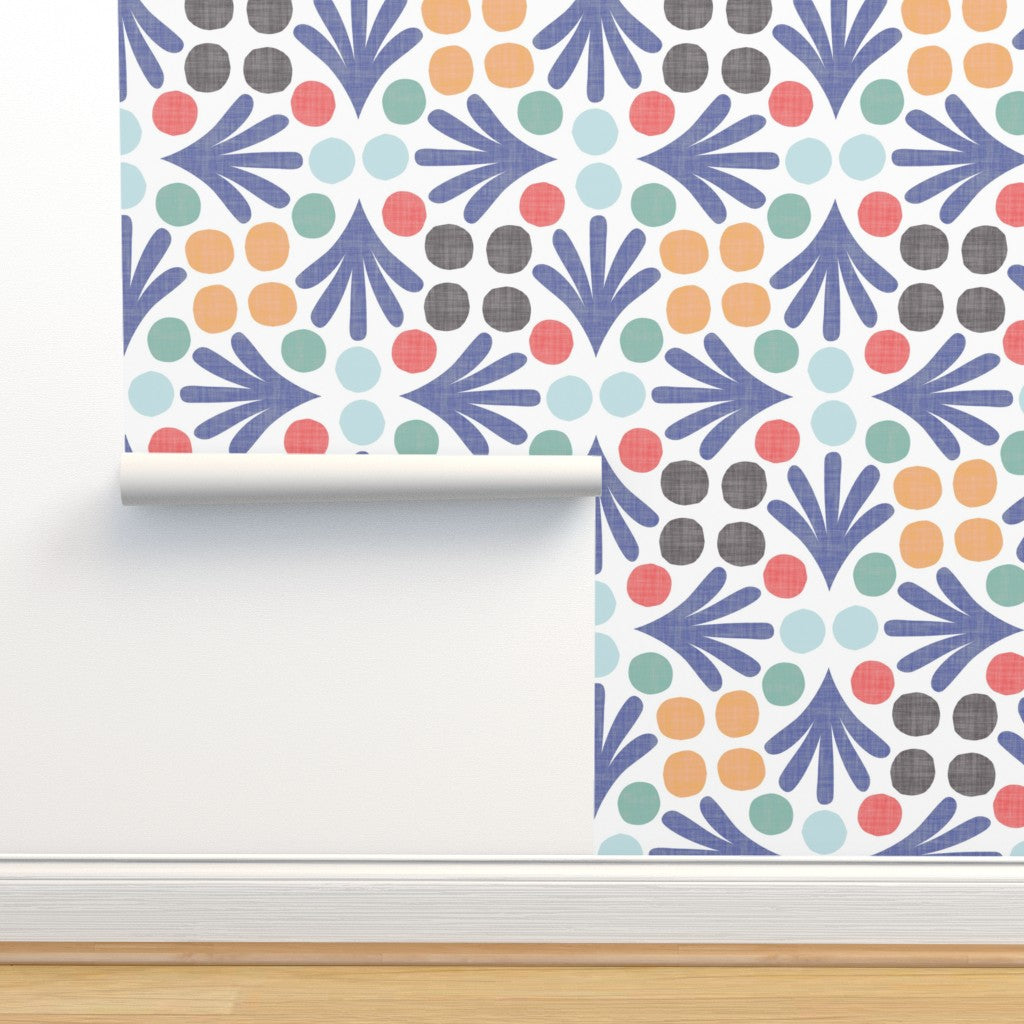 This gorgeous and fun scallop ogee pattern is composed of yellow, red, aqua, pale blue, and royal blue, and is sure to add visual interest to any wall.
